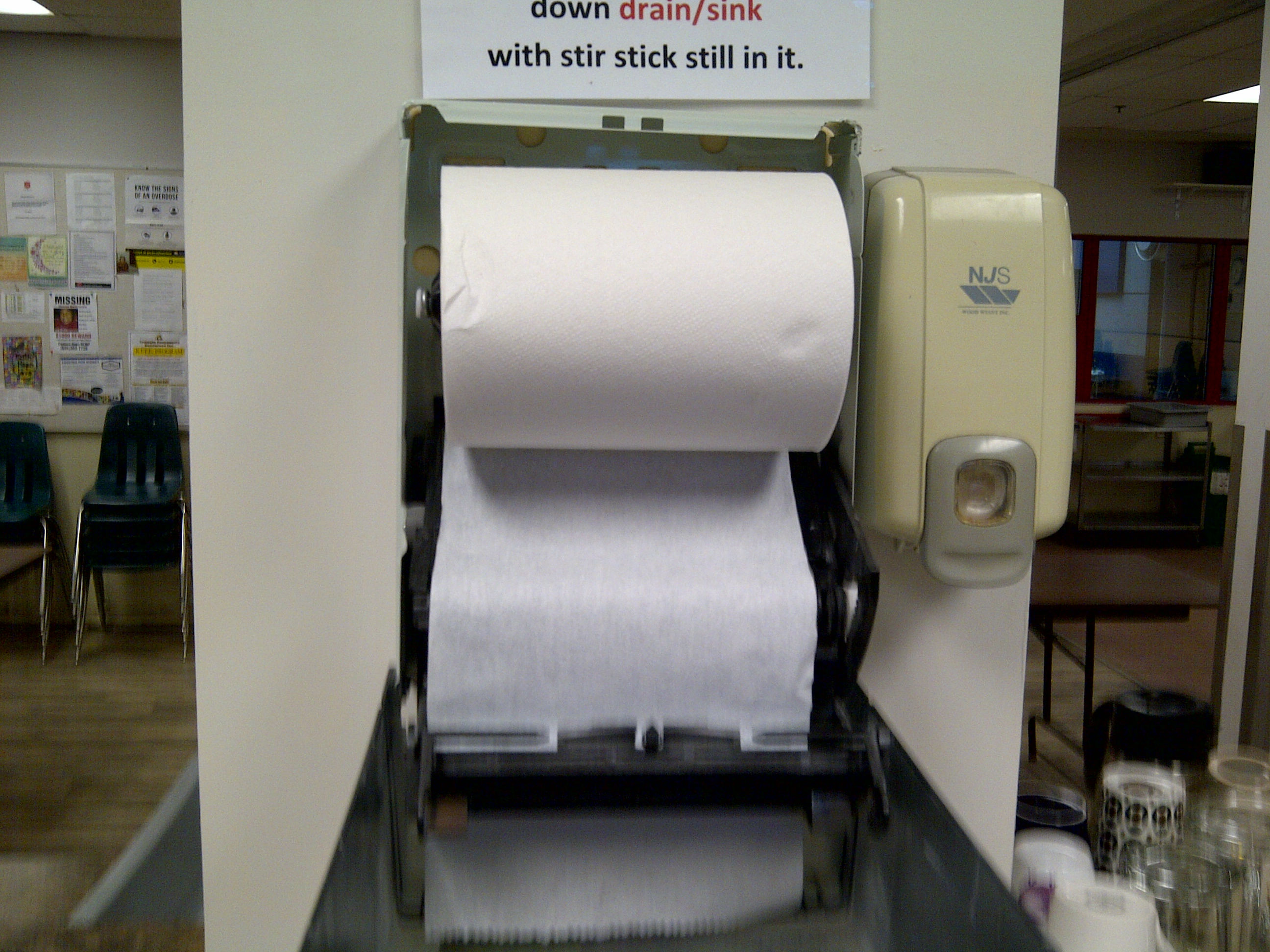 Seeking paper towel to dry my just washed hands the paper towel dispenser struggled to provide a scrap of towel much less enough to achieve dry hands.